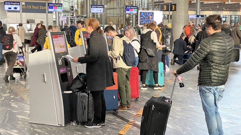 På en normal dag er det anbefalt å være halvannen time før avgang på flyplassen, når man har bagasje som skal sjekkes inn.