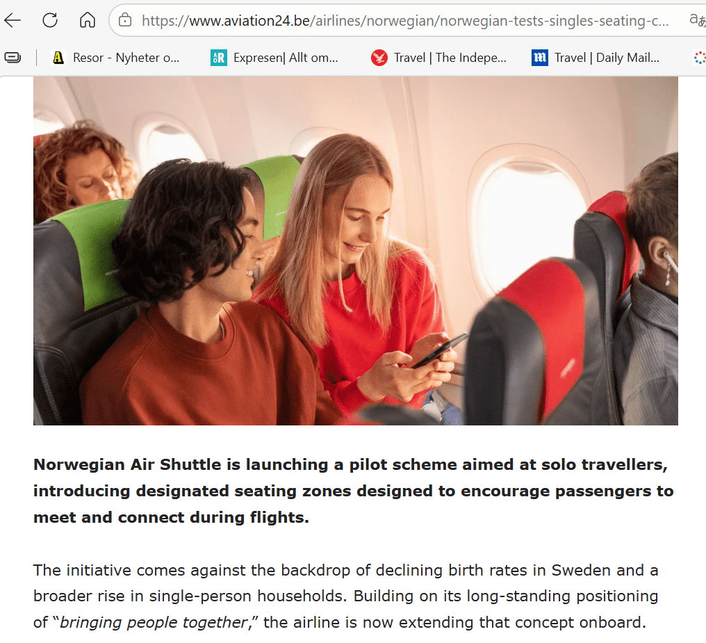Der skulle single reisende kunne reservere egne seter på Norwegian-flygninger.